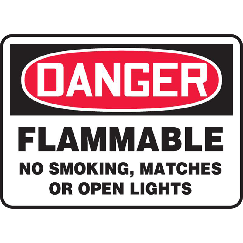 OSHA Danger Safety Sign, Flammable - No Smoking, Matches Or Open Lights