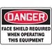 OSHA Danger Safety Sign, Face Shield Required When Operating This Equipment